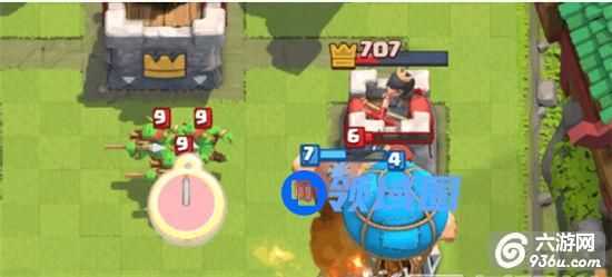 对手很多时候会用黄毛和一些杂兵解巨人,这个时候我们可以直接铺出毒药连同对手防御塔一起伤害到,不过这里玩家要注意一下对手会不会再召唤别的东西,如果不会召唤别的东西能剩毒药用箭雨就最好。
