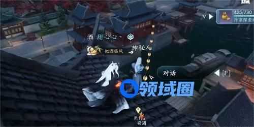 2、接着我们就来到【944,1038】到达楼顶,与神秘人对话,在对话途中我们需要接受挑战采花灯。