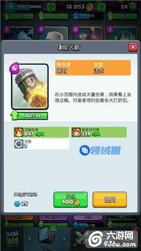 火箭嗯,我觉得还是称呼他原子弹比较合适飞行速度奇慢,落地有蘑菇云的效果,跟自闭塔防流是绝配,和矿工,冰冻法术堪称皇室最无赖的3卡,满级伤害爆表,但由于费用高,且需要良好的判断能力,出场率和狂暴也是不相伯仲
