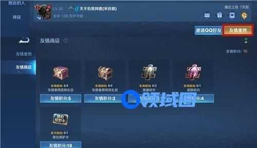 友情重燃-友情商店中,可以花费10点友情积分,兑换一张段位保护卡,每月限定购买一张,其中友情积分可通过和回归老友组队获得,一场给一分。