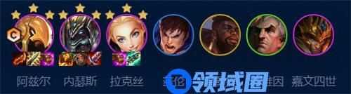 盖伦、皇子、拉克丝、狗头、岩雀、沙皇、乌鸦。中期3-2拉6人口,尽量不要D牌,继续划水上7,如果前期走的是大连败,那么就在3-5拉7搜牌,否则正常还是等到4-1再拉7。