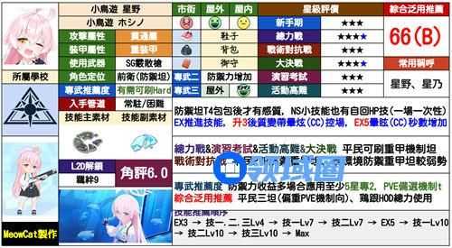 蔚蓝档案小鸟游星野值不值得抽?不值得,角色强度低,可通过刷副本积攒碎片获取,是前期好用的平民坦克之一。作为蔚蓝档案公测的up卡池三星角色,许多新手玩家都会花资源抽,她是常驻角色,早晚都能得到,不用浪费资源获取。中后期的就业环境也不佳,强度有限适合特定的关卡,泛用性还可以,容易被其他强力角色代替,有资源的玩家建议存着抽限定角色,小鸟游星野很容易在实战中打着打着血见底,虽然形象蛮可爱的,但数值方面的表现并不好,抽取培养需慎重考虑,接下来为大家介绍一下蔚蓝档案小鸟游星野抽取建议。