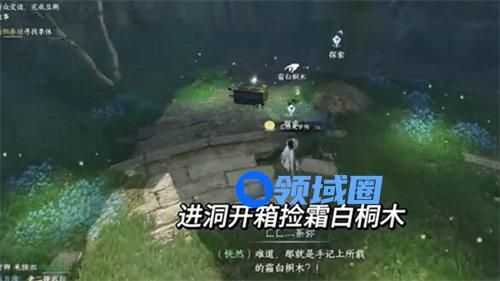 1、首先我们到雪石道坐标位置:1132,1265,进山洞开启宝箱即可获得霜白桐木。