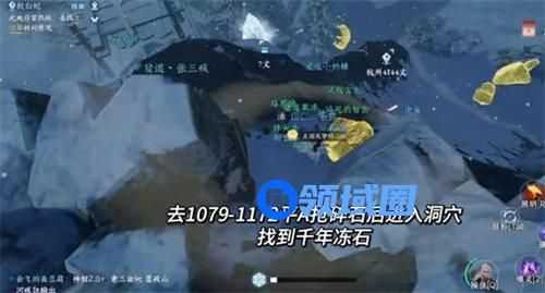 3、接着前往地图坐标位置:1076,1172,平A枪碎石后即可进入洞穴获得千年冰石。