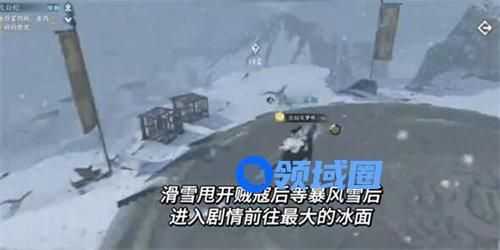4、然后我们滑雪甩开尾随的小贼,等剧情过后前往最大的冰面即可。
