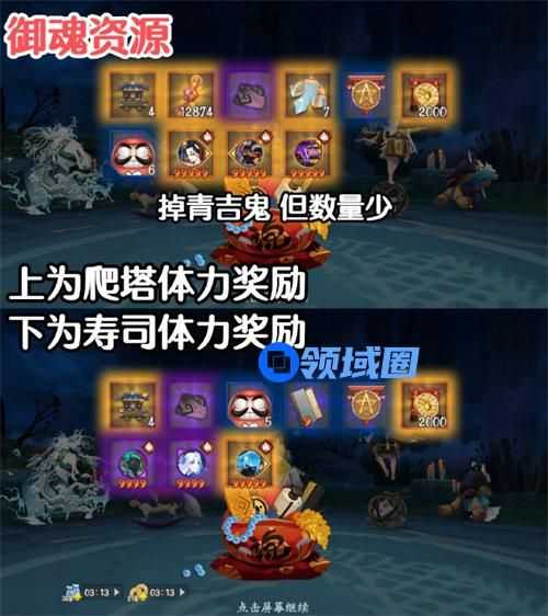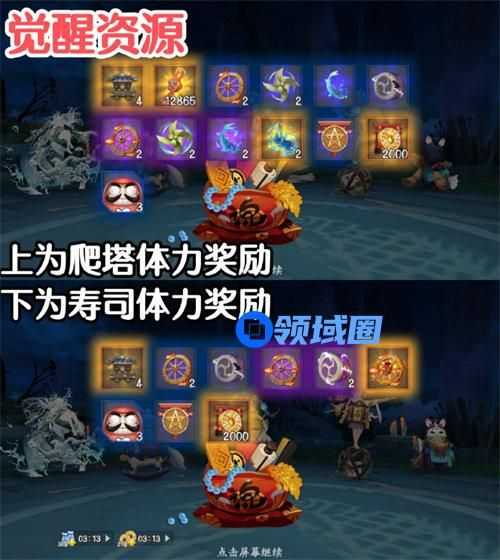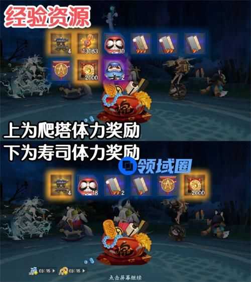 5.不论哪种资源,爬塔积分都一致;爬塔体力/寿司体力都是每局4花车经验,整个活动上限800点经验