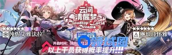 活动说明:活动期间【限定寻访·夏季】-【云间清醒梦】寻访开启,该寻访中以下干员出现率上升