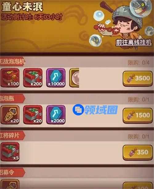 童心未泯是目前游戏内最新的活动玩法,每个玩家都可参与其中得到大量的泡泡水,这些泡泡水是兑换道具,当你积攒到一定的数量,就可兑换想要的奖励,导致不少玩家想快速得到泡泡水,获取的途径有很多。如每日任务、挂机收益、完成活动挑战,其中最快最直接的就是充值了,一步搞定没有任何烦恼,每天至少可白嫖260个,想搬空商店不是问题,只要肯花时间,佛系的玩家直接挂机领取离线收益即可,人人都可在活动中获得自己需要的奖励,玩法有趣又好玩,接下来为大家介绍一下咸鱼之王童心未泯打法攻略一览。