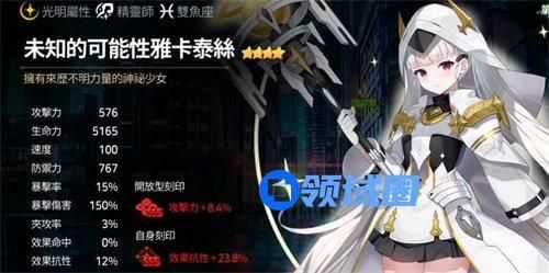 1、「未知的可能性雅卡泰丝」可以通过解除弱化效果、赋予防护罩、产生强化效果等提升队伍整体的战斗力;