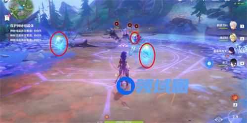 4、到达之后将裂隙中的两只兽境猎犬击败并开启挑战,玩家需保护3个结晶体,然后将出现的兽境猎犬击败即可完成挑战。