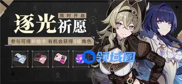 「逐光祈愿」活动开启,超值折扣来袭!参与祈愿有机会获得补给卡奖励,还有机会获得S级角色「螺旋·愚戏之匣」、「始源之律者」,舰长不要错过哦~