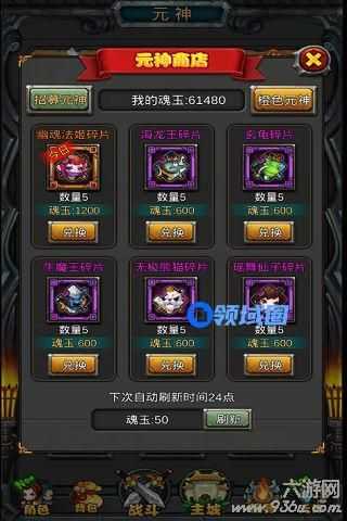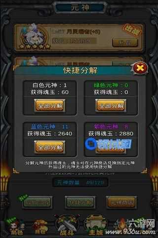 分解多余元神可获得魂玉,魂玉可在元神商店中兑换元神碎片