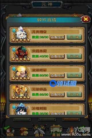 除了抽将外,还可以通过积攒指定量的元神碎片合成(同类30个)出元神