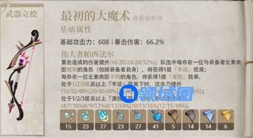 2、队伍中存在火元素角色时,获得一层手法效果,效果叠加时提升攻击力。