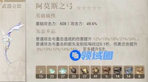1、基础攻击力大于若水,是一把相当优秀的五星弓箭。