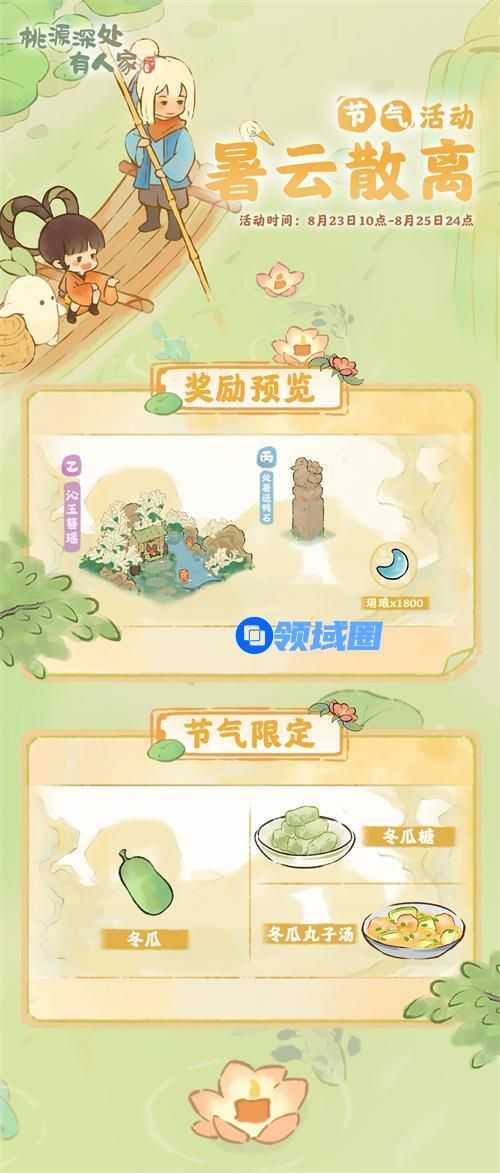 以上就是桃源深处有人家暑云散离活动玩法攻略的全部内容,希望能够帮助到看过这篇资讯的你,想要获取更多精彩内容收藏领域圈即可,你的关注是我更新的动力!