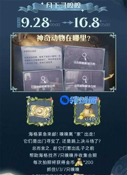 海格紧急来邮!嗅嗅离“家”出走!它们是出门寻宝了,还是跳上决斗场了?总而言之,趁它们惹出乱子之前帮助海格找齐7只嗅嗅并收集合照。