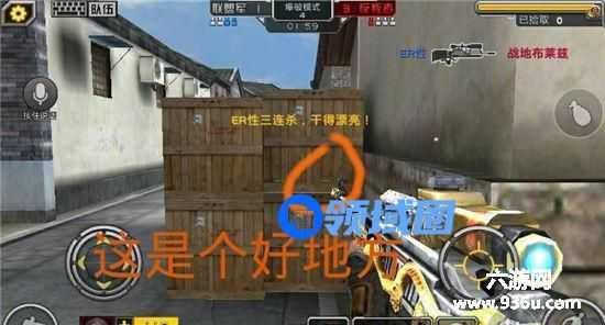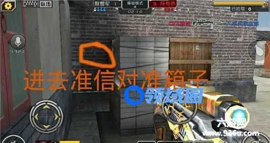 第二个,这是去A大道左边的箱子,老办法,靠近圈出的箱子用狙击打,前提是有人的情况下,但是你要小心后面的斜坡~进攻类