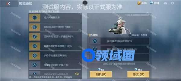 九尾狐角色可以洗炼多种技能。其中就有减少闪光效果、团队成员主弹夹子弹+1、团队复活1s移速提升、步枪霰弹枪切枪速度提升这样的强势技能。这个角色技能库可谓是十分全面,涵盖了竞技、生化、挑战三种模式。玩家可以根据自己的需要,把自己的九尾狐角色洗炼成更强大的多面选手。