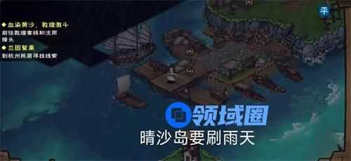 3、开启归云岛的前置任务:在杭州(17,2)对话剑客帮其击杀七煞门人,完成剧情并获得羊皮地图,杭州(30,0)进入东江村将羊皮地图给予(8,4)的船夫,帮助其备齐出海的船只和物品就可以了。