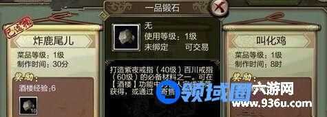 一看就知道了!需要制造符和材料。材料早呢么得到呢!就是请客吃饭啦!开个玩笑其实就是在主菜单的酒馆里!然后把菜系往后拉!就能看见各式菜系能得到什么材料了。