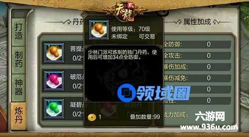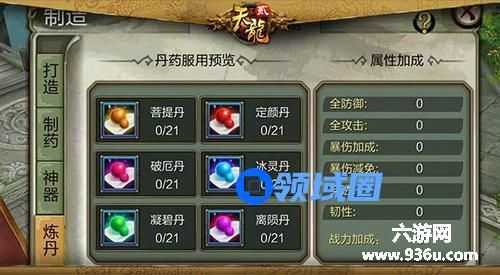 将所有灵物放入鼎炉中即可获得一枚专属职业丹药,每种职业丹药会永久增加不同的战力属性,但每个门派只能炼就其对应门派的丹药,比如说,少林只能炼 制少林的丹药。不同职业的内丹带给少侠们的属性加成也各不相同。那有些少侠说了积少成多,除了原本的职业战力属性,我还想提升其他属性怎么办!