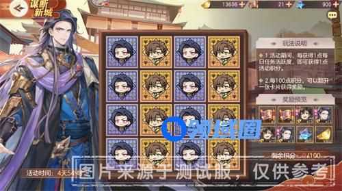 活动期间,每获得1点每日任务活跃度,即可同时获得1点活动积分,每消耗100点活动积分,即可在谋断赠礼活动中翻开一张卡片。卡片背面包含祈愿招募券、陈到碎片、司马师碎片、祈愿星币、元宝等各种奖励。