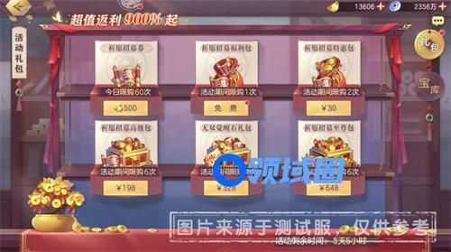 祈愿招募特惠包:内含祈愿招募券*5、元宝*300,售价30元,活动期间限购2次。