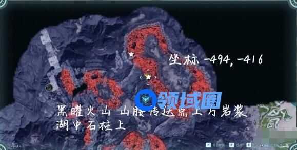黑曜火山山腰传送点上方岩浆湖中石柱上