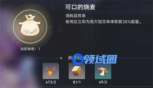 食用效果:使用后立即为我方指定单体恢复30%能量。