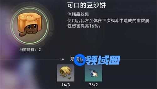食用效果:使用后我方全体在下次战斗中造成的虚数属性伤害提高16%。