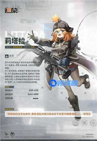 莉塔拉是一名火力型人形,能造成大范围伤害,并摧毁可破坏掩体。为敌方单位施加【防御降低Ⅱ】的同时,对于拥有防御类减益的敌方目标,造成的伤害增加。
