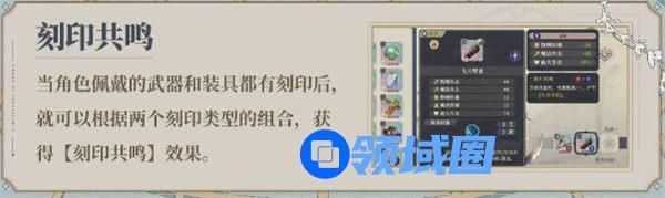 当角色佩戴的武器和装具都有刻印后,就可以根据两个刻印类型的组合,获得[刻印共鸣]效果。