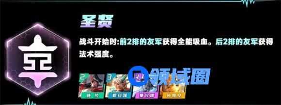 战斗开始时:前2排的友军获得全能吸血。后2排的友军获得法术强度。