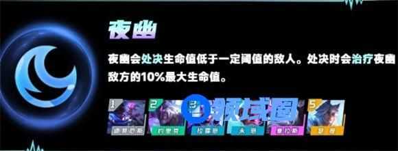 报复:攻击或被命中时叠加护甲与魔抗。叠加一定层后,夜幽弈子们每2秒会对附近的敌人造成其最大生命值一定百分比的魔法仿害。