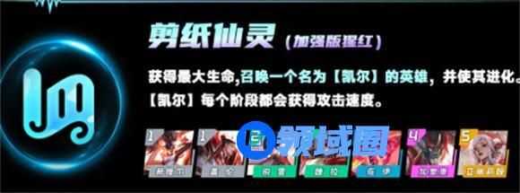 剪纸仙灵会召唤出凯尔,可以为凯尔选择不同的强化使其飞升,同时会提供给剪纸仙灵棋子提供最大生命值。