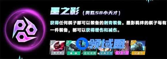获得任何棋子都可以装备的刺青装备。墨影羁绊的棋子每有一件装备,都可以获得增伤和减伤。