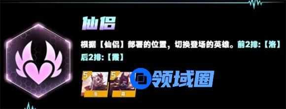将霞洛置于后2排时,霞会上场。置于前2排时,洛会上场。当一名仙侣施法时,另一半会在场边提供额外增益。