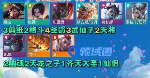 3剪纸、2格斗、4圣贤、3武仙子、2天将、2幽魂、2天龙之子、1齐天大圣、1仙侣