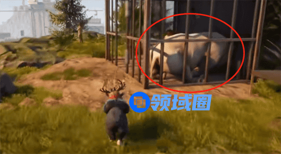 2、到达后就可以看到笼子中的犀牛,这个犀牛叫做罗茜,我们舔住她。