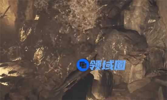 5、沿着水流冲出的通道移动,在来到外面后右转进入右侧的洞穴之中。