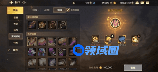 4、获得的深渊精粹是非常重要的史诗装备制作材料,1000个相同部位的深渊精粹可制作指定部位的史诗装备。点开主面板上的制作-装备,选择深渊派对即可看到各种装备制作所需要的材料。