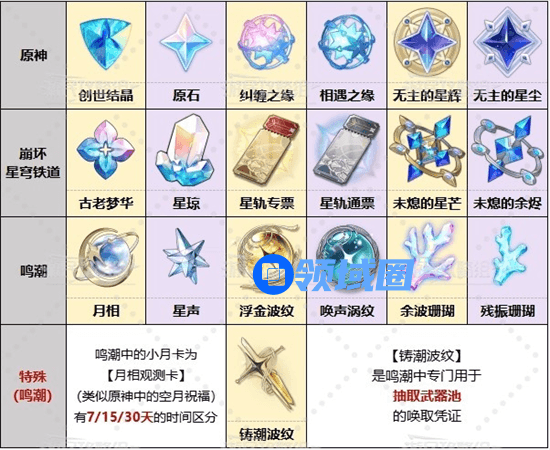 鸣潮原神崩铁抽卡道具有什么不同