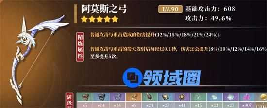 首先介绍下阿莫斯之弓,在满级的情况下基础的攻击力为六百点。其效果是让甘雨增加百分之二十四的普攻与重击伤害,而且每次射击出的箭矢每经过零点一秒,就会提升百分之十六的伤害。该武器完美的契合甘雨的核心输出模式,一般情况下,她的箭矢可以稳定的吃到三层的攻击加成。在甘雨突破天赋的情况下,还会额外增加百分之二十的暴击效果,与武器相叠加可达到百分之一百多的加成。在玩家选择玩永冻流的甘雨时,阿莫斯无疑就是最佳的选择,毕竟是专属的武器。当玩家选择玩融化流的时候,因为需要甘雨贴脸与怪物进行输出,导致该武器的被动效果无法发挥。但是比起其他的大部分武器来说,阿莫斯也足以胜任了。