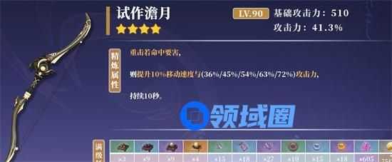 五星武器都各有优点,但是也具有一个最大的缺点,就是比较难以获得。对于运气不太好的玩家来说,前期经常使用的是四星武器。第一个推荐的四星是试作澹月,在满级情况下基础攻击力为五百一十。装备后当甘雨的重击命中敌人的要害后,就会提升自己百分之十的移速,以及百分之七十二的攻击力,持续时间为十秒钟。这把武器算得上是四星里属性最适配甘雨的,但问题是有个要害作为限制,而最近新出的怪物要害都比较难找。一旦无法恰好把攻击命中要害,都会导致加成失效。