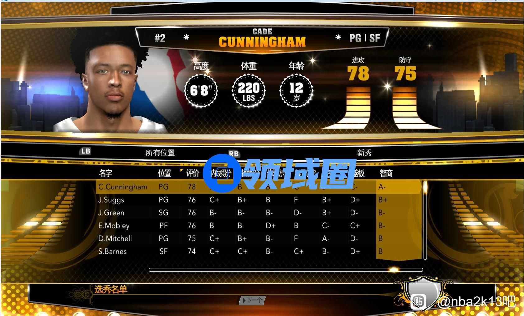 在《NBA 2K13》的选秀名单中,不乏一些后来成为NBA巨星的潜力新星。例如,某些控球后卫以其出色的传球视野和速度见长,能够在场上迅速组织起有效的进攻;而得分后卫则以其精准的投篮和突破能力著称,是球队外线得分的重要利器。小前锋位置上,那些拥有全面技术和出色身体素质的球员往往能成为球队的领袖;大前锋和中锋则以其篮下的统治力和防守能力为球队提供坚实的内线保障。