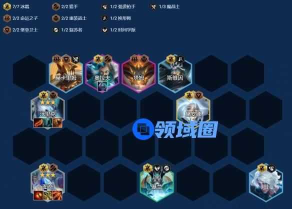 羁绊:7冰霜 2猎手 2命运之子 2重装战士 2堡垒卫士