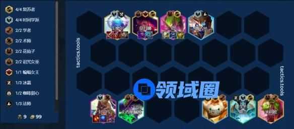 羁绊:4复苏 4时间学派 2学者 2术师 2花仙子 2诅咒女巫