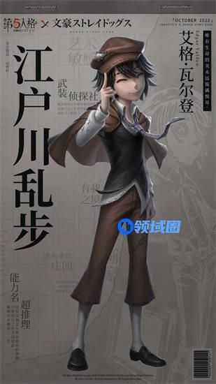 第五人格是一款有着哥特式风格的解谜游戏,游戏有着真实的物理引擎,能够自由的控制角色移动,还采用了3D的游戏视角,能够随意调节方向,更是有着紧张刺激的追逃玩法,需要在一定时间内打开安全门逃生。第五人格中每一个角色都有着自己的技能以及天赋,玩家分为两个阵营,在庞大的庄园地图中进行激烈的对抗,游戏音效十分的阴森,让玩家能够沉浸在恐怖的氛围之中。第五人格与文豪野犬联动的皮肤消息已经来啦,接下来为大家介绍一下第五人格画家江户川乱步皮肤一览。