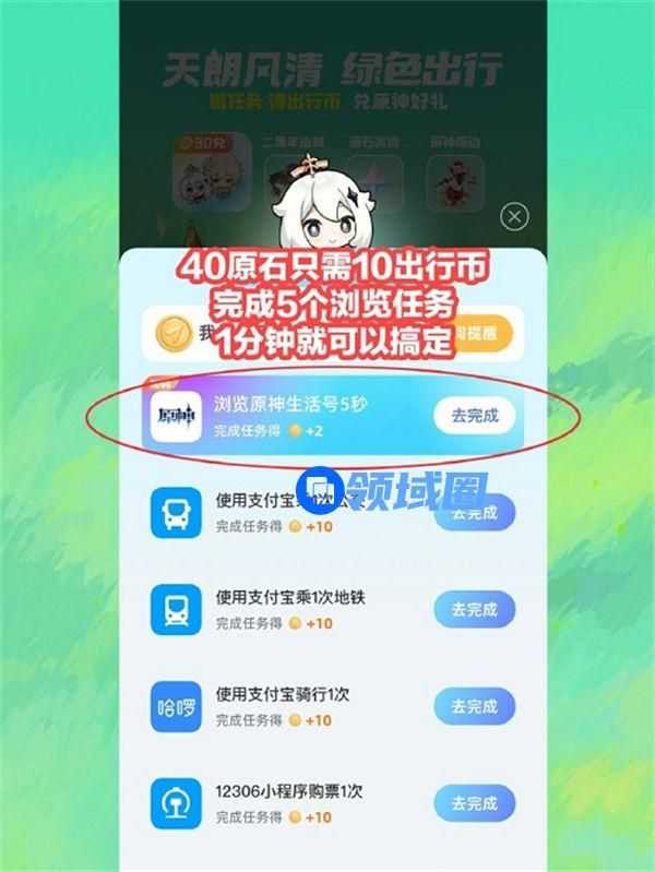 原神在游戏方面甚至可以是抓住了玩家的心,出了许多符合玩家兴趣的角色和丰富的活动玩法层出不穷,每个角色都是精心制作的不仅有着可爱的外表,还有精致细腻的服饰。经常观察的玩家应该可以发现其中的细节之处,可见米哈游美工的技术之强,还加入了不少吸引人的主线剧情,游戏与支付宝联动活动在9月22日开启了,就是今天,玩家们只要在支付宝活动界面进行简单的操作即可领取40原石,兑换40原石只需要10个出行币,也就是完成5个浏览任务就可以了,非常的简单,几分钟就能搞定,白嫖原石奖励,接下来为大家介绍一下原神支付宝联动原石领取方式一览。